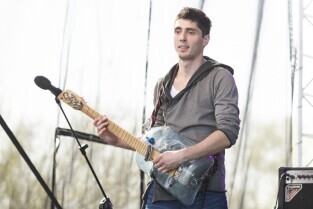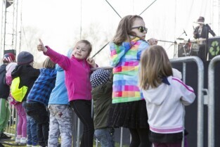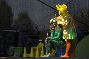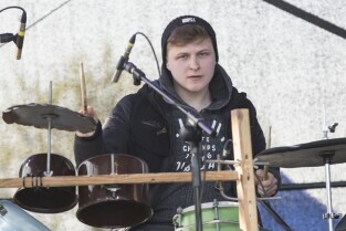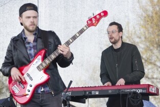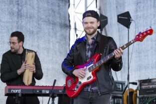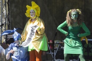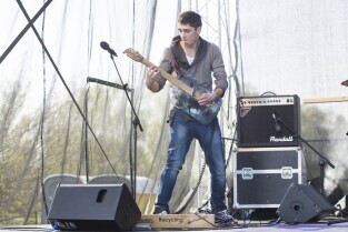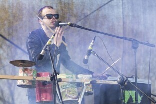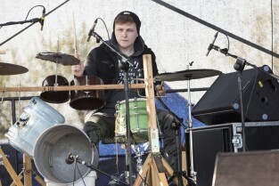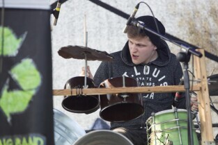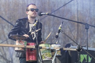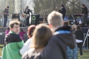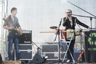 Uwaga! Szkło! Edukacyjny piknik rodzinny w ramach kampanii edukacyjnej poświęconej obowiązkowi segregacji szkła. Gdańsk, Park Reagana. Nz. Koncert zespołu Recykling Band