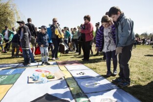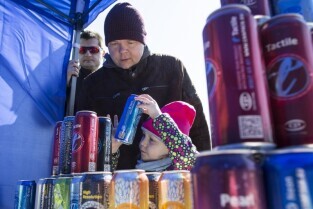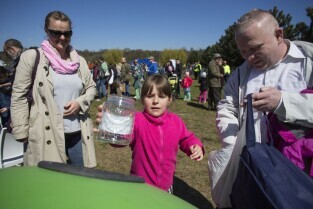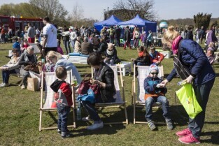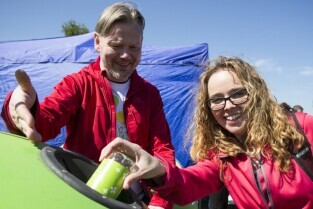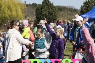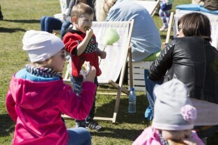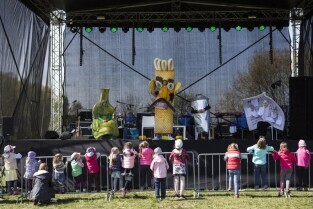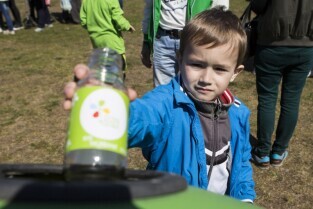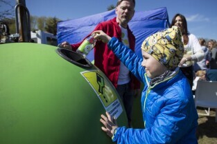 Uwaga! Szkło! Edukacyjny piknik rodzinny w ramach kampanii edukacyjnej poświęconej obowiązkowi segregacji szkła. Gdańsk, Park Reagana