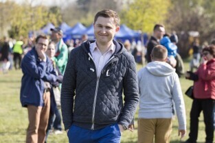 Uwaga! Szkło! Edukacyjny piknik rodzinny w ramach kampanii edukacyjnej poświęconej obowiązkowi segregacji szkła. Gdańsk, Park Reagana. Nz. Z-ca Prezydenta Gdańska Piotr Grzelak