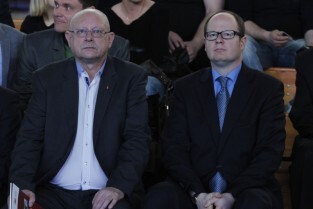 VI Młodzieżowa Gala Sportu Gdańskiego. Hala sportowa MOSiR przy ul. Kołobrzeskiej 61 w Gdańsku Przymorze. Nz. Prezydent Gdańska Paweł Adamowicz i Dyrektor Biura Prezydenta Gdańska ds. Sportu Andrzej Trojanowski