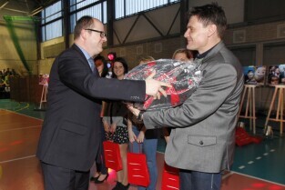 VI Młodzieżowa Gala Sportu Gdańskiego. Hala sportowa MOSiR przy ul. Kołobrzeskiej 61 w Gdańsku Przymorze. Nz. upominki wręcza Przewodniczycy Komisji Sportu i Turystyki Rady Miasta Gdańska Mirosław Zdanowicz