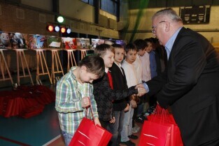 VI Młodzieżowa Gala Sportu Gdańskiego. Hala sportowa MOSiR przy ul. Kołobrzeskiej 61 w Gdańsku Przymorze. Nz. Prezydent Gdańska Paweł Adamowicz