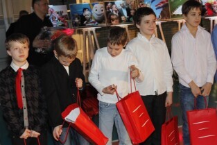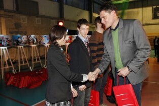 VI Młodzieżowa Gala Sportu Gdańskiego. Hala sportowa MOSiR przy ul. Kołobrzeskiej 61 w Gdańsku Przymorze. Nz. upominki wręcza Mateusz Kusznierewicz