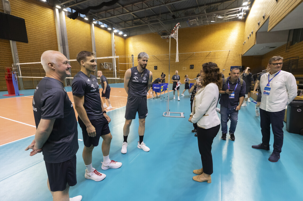 Gdańsk. VNL 2025 - Siatkarska Liga Narodów Mężczyzn. Wizyta prezydent Gdańska Aleksandry Dulkiewicz na treningu Polskiej Reprezentacji.