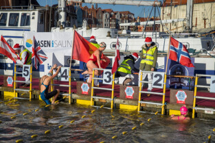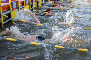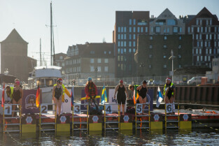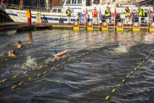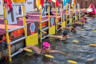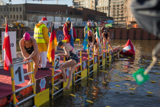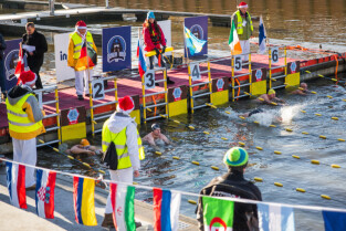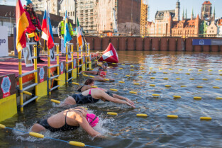Gdańsk, Szafarnia. V Międzynarodowe Mistrzostwa Polski Morsów w pływaniu ekstremalnym na czas