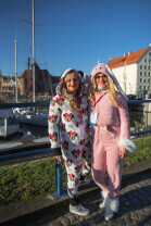 Gdańsk, Szafarnia. V Międzynarodowe Mistrzostwa Polski Morsów w pływaniu ekstremalnym na czas. Nz. Karolina Eliasz i Magdalena Sitkowska
