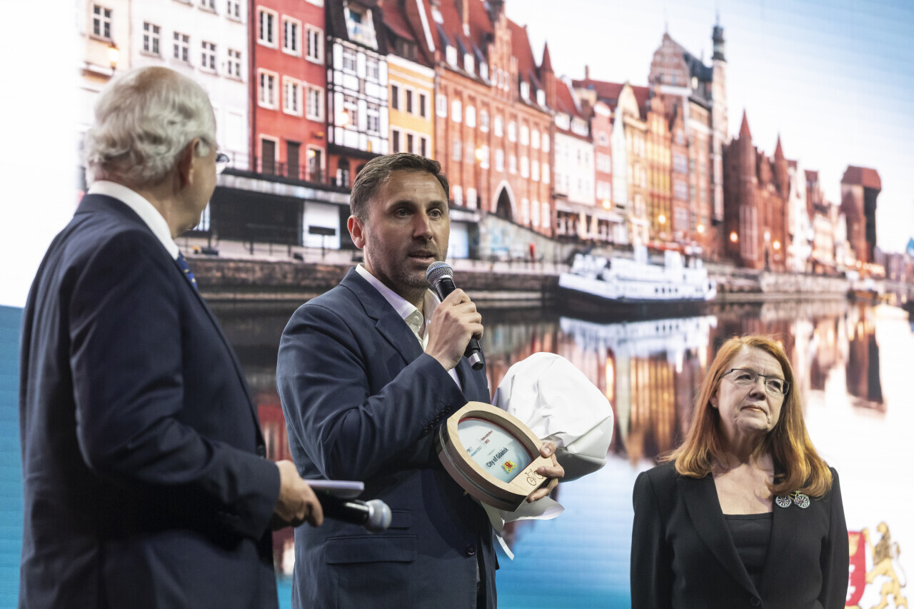Gdańsk.Velo-city 2025 wręczenie nagród ECF i nagród dla samorządów. Nz. Wiceprezydent Gdańska Piotr Borawski.
