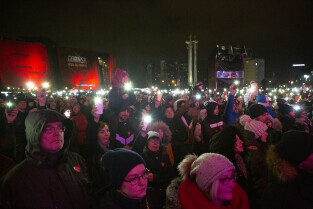 Gdańsk, plac przed ECS. Finał Wielkiej Orkiestry Świątecznej Pomocy. Światełko do Nieba