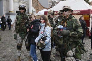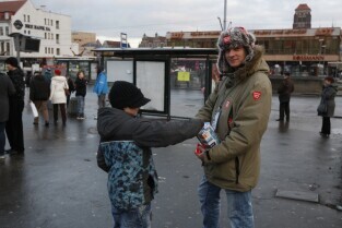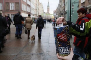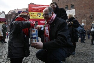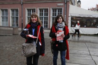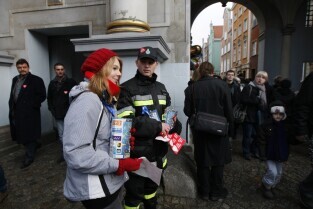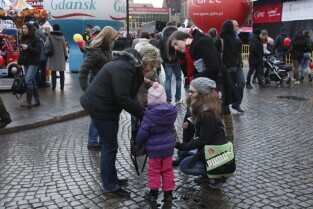 XX Finał Wielkiej Orkiestry Świątecznej Pomocy w Gdańsku. Nz. kwestujący wolontariusze