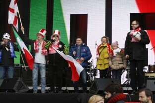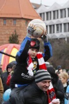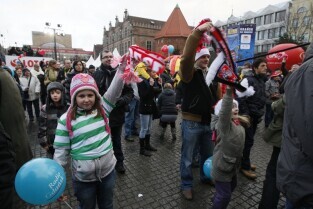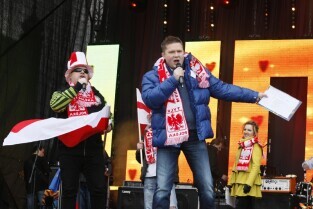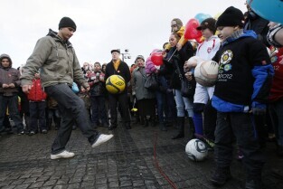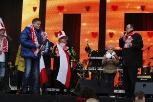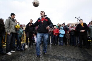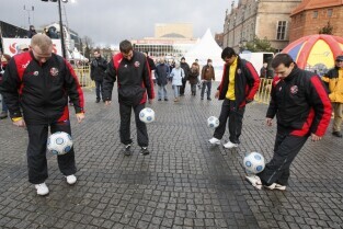 XX Finał Wielkiej Orkiestry Świątecznej Pomocy w Gdańsku. Nz. rozgrzewka do Euro 2012 - podbijanie futbolówki