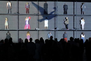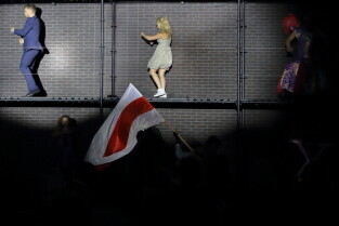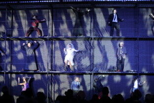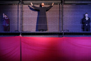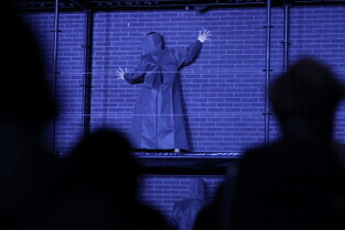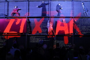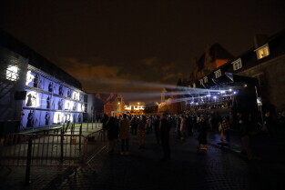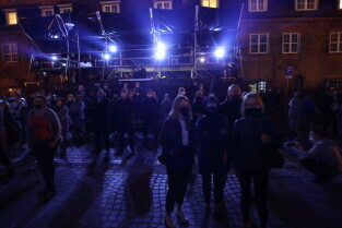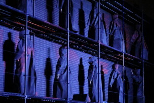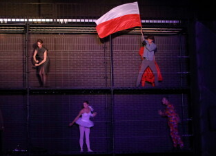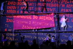 Gdańsk. „WYMURZANIE WOLNOŚCI”, performance muzyczno-ruchowy na murach Gdańskiego Teatru Szekspirowskiego.