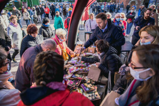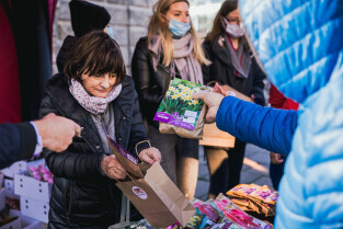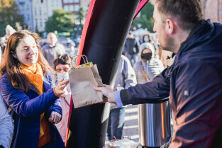 Gdańska, Brama Wyżynna. W Gdańsku rozdano mieszkańcom bezpłatne cebulki kwiatów ozdobnych. W akcji brał udział Piotr Borawski, zastępca prezydenta ds. przedsiębiorczości i ochrony klimatu