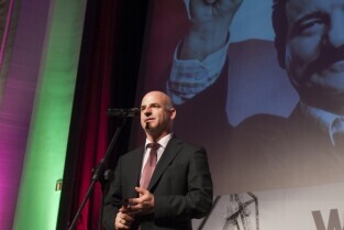 Gdańsk, Kino Neptun. Prapremiera filmu w reż. Andrzeja Wajdy "Wałęsa. Człowiek z nadziei". Nz. Prezes Akson Studio Michał Kwieciński