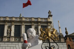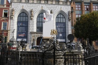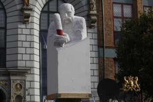 Gdańsk, Długi Targ. Na miejscu Neptuna (zdemontowanego na czas renowacji) ustawiona została figura ze styropianu z podobizną Lecha Wałęsy. Okazją do umieszczenia rzeźby są urodziny byłego Prezydenta RP oraz uroczystości przyznania nagrody jego imienia