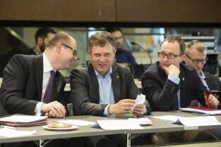 Walne Zgromadzenie stowarzyszenia Gdański Obszar Metropolitalny. Gdańsk, Europejskie Centrum Solidarności. Nz. od lewej: Prezydent Gdańska Paweł Adamowicz, Prezydent Sopotu Jacek Karnowski, Z-ca Prezydenta Sopotu Marcin Skwierawski