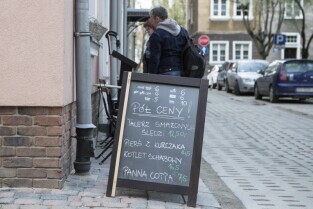 Gdańsk, Główne Miasto. Akcja promocyjna "Weekend za pół ceny", w ramach której w wybranych lokalach gastronomicznych obowiązuje 50% obniżka cen