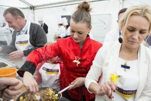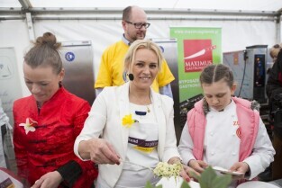 Wielki Show Kulinarny w ramach akcji promocyjnej "Weekend za pół ceny. Gdańsk, Długi Targ. Nz. Burmistrz Gniewu Maria Taraszkiewicz-Gurzyńska