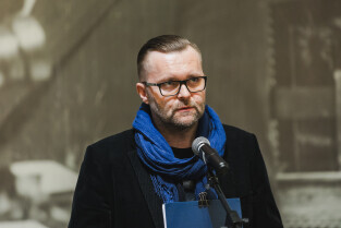 Gdańsk, Wielka Zbrojownia. Wernisaż wystawy „Spheres. Fangor – Heweliusz”. Nz. Dr hab. Adam Świerżewski rektor ASP w Gdańsku