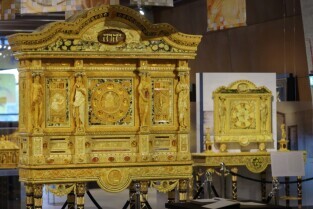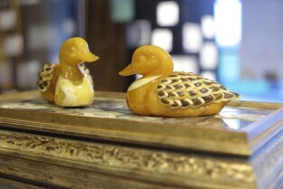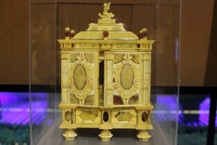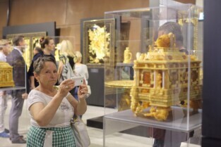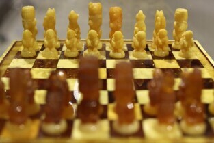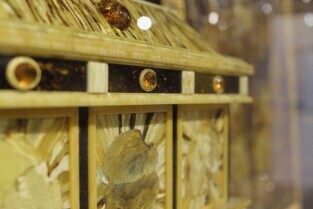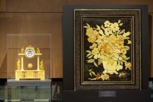 Bogactwo barw i odmian bursztynu bałtyckiego. Szkatuły, meble, obrazy, rzeźby, lampy i lustra, świeczniki, unikatowa na skalę światową kolekcja bursztynowych brył i inkluzji.