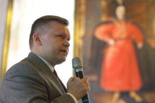 Gdańsk. Muzeum Historyczne Miasta Gdańska. Wernisaż wystawy pt. "Pod Królewską Koroną". Nz. Radny Marek Bumblis.