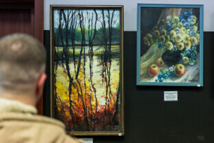 Gdańsk, ul. Aksamitna 4a. Wernisaż wystawy ukraińskiego artysty Wiktora Zabiyaka "sztuka pod obstrzałem"