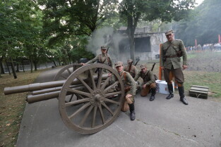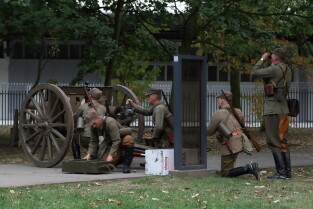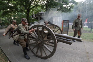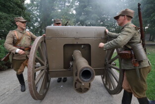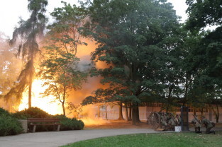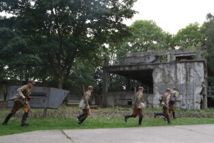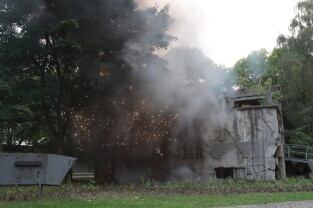 Gdańsk, Westerplatte. Pokaz pirotechniczno-rekonstruktorski bombardowanie ruin Nowych Koszar.