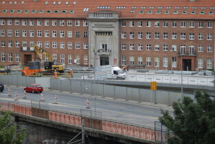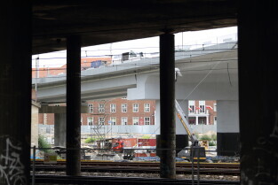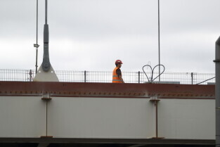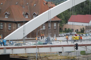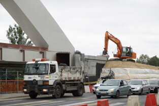 Gdańsk. Budowa wiaduktu Biskupia Górka.