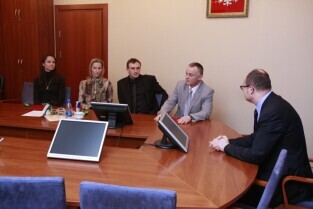 Urząd Miejski w Gdańsku. Wizyta u Prezydenta Gdańska Pawła Adamowicza polskich florecistek, które na mistrzostwach świata w Paryżu zdobyły srebrny medal w turnieju drużynowym.
