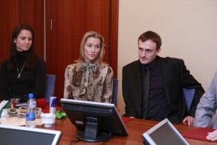 Urząd Miejski w Gdańsku. Wizyta u Prezydenta Gdańska Pawła Adamowicza polskich florecistek, które na mistrzostwach świata w Paryżu zdobyły srebrny medal w turnieju drużynowym. Nz. (od lewej) Anna Rybicka, Karolina Chlewińska i Sylwia Gruchała