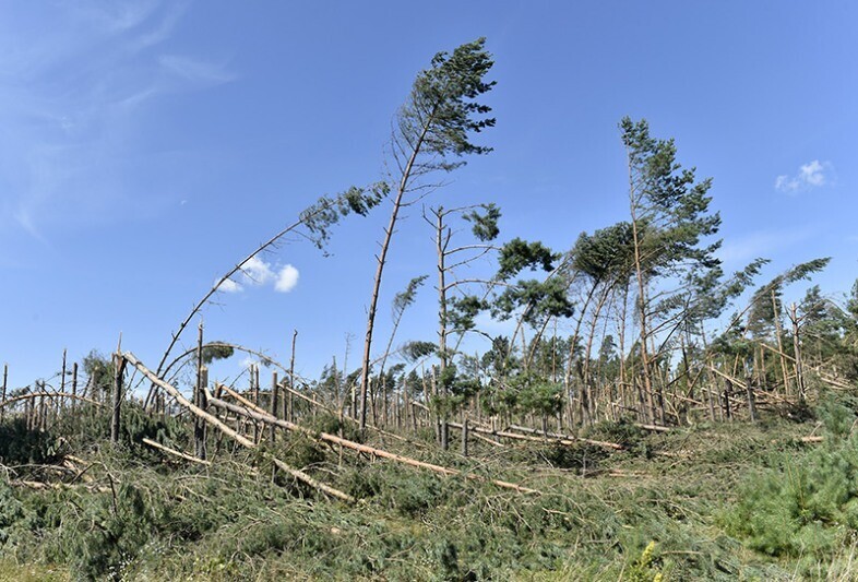 Skutki wichury na Pomorzu. Zniszczony przez woatr las pomiędzy Dziemianami a Raduniem na Kaszubach. Z15.08.2017 Fot.Maciej Kosycarz / KFP