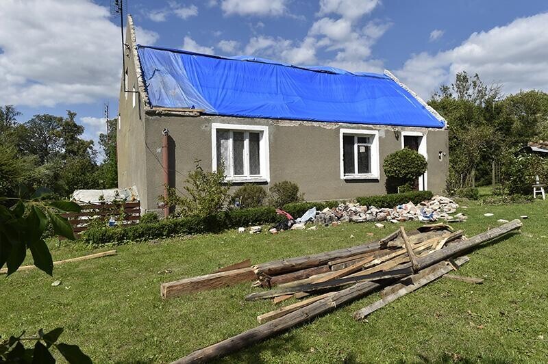 Skutki wichury na Pomorzu. Raduń na Kaszubach, gmina Dziemiany. Zniszczony przez wiatr dom. 15.08.2017 Fot.Maciej Kosycarz / KFP