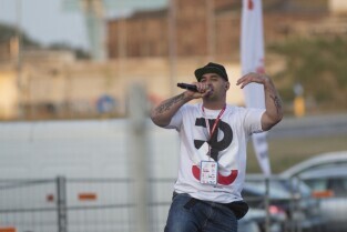 Widowisko muzyczne "My Naród" z okazji 35. rocznicy podpisania Porozumień Sierpniowych w 1980 r. Gdańsk, dawny teren Stoczni Gdańskiej. Nz. Daab