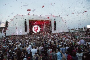Widowisko muzyczne "My Naród" z okazji 35. rocznicy podpisania Porozumień Sierpniowych w 1980 r. Gdańsk, dawny teren Stoczni Gdańskiej. Nz. Lombard