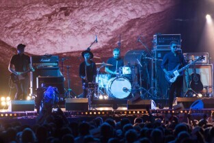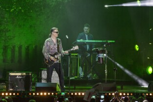 Widowisko muzyczne "My Naród" z okazji 35. rocznicy podpisania Porozumień Sierpniowych w 1980 r. Gdańsk, dawny teren Stoczni Gdańskiej. Nz. Elektryczne Gitary