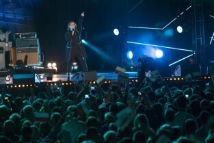 Widowisko muzyczne "My Naród" z okazji 35. rocznicy podpisania Porozumień Sierpniowych w 1980 r. Gdańsk, dawny teren Stoczni Gdańskiej. Nz. Sztywny Pal Azji