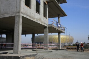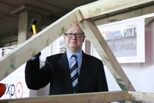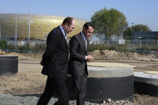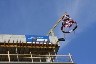 Amber Expo. Uroczyste zawieszenie wiechy na budowie nowego centrum wystawienniczo-kongresowego należącego do Międzynarodowych Targów Gdańskich S.A.