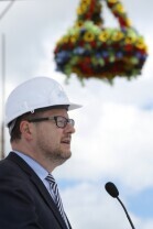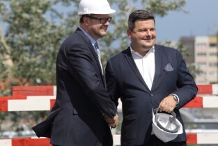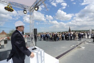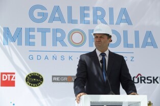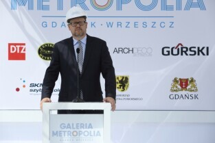 Spacer po Dolnym Wrzeszczu i zawieszenie wiechy na dachu Galerii Metropolia. Nz Mieczysław Struk Marszałek Województwa Pomorskiego