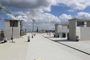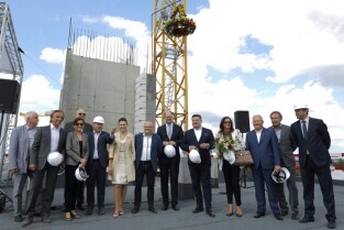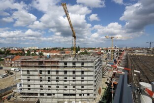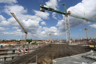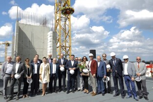 Spacer po Dolnym Wrzeszczu i zawieszenie wiechy na dachu Galerii Metropolia. Nz Budowa galerii Metropolia