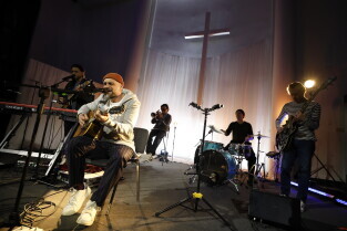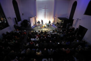 Gdańsk.Wieczorny finał święta “Biskupia bliżej…” Nz. Koncert Skubas.