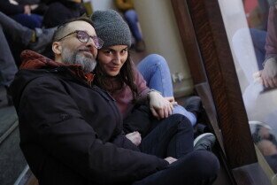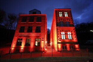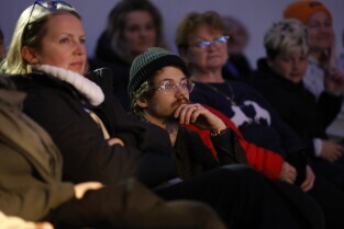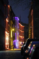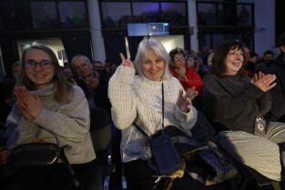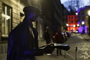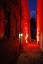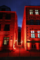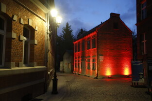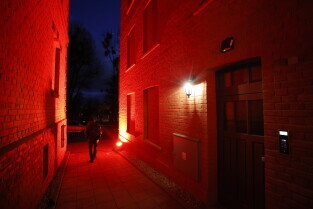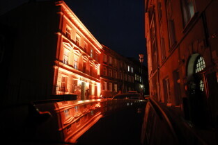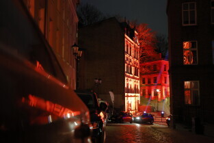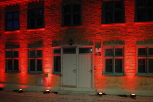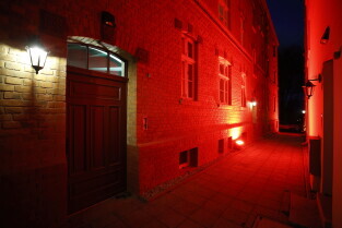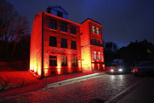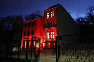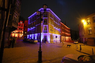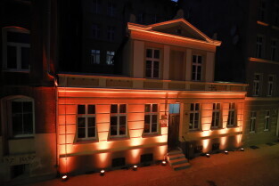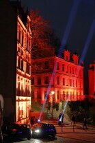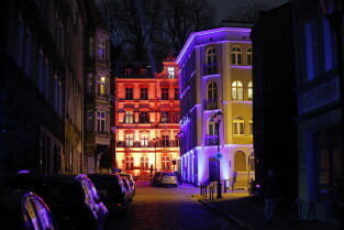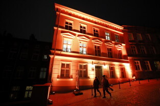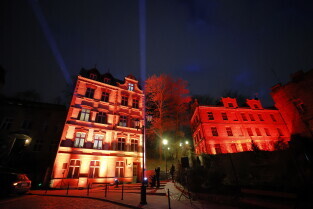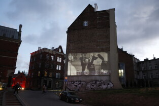 Gdańsk.Wieczorny finał święta “Biskupia bliżej…” Nz. Projekcja na ścianie – Nieme kino „Podróż Nataniela W. czyli przyczynek do rozważań o przeszłości Biskupiej Górki”