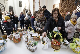 Gdańsk, Wielka Sobota. Święcenie pokarmów w Kościele Św. Trójcy.