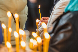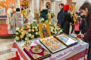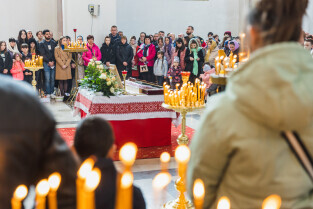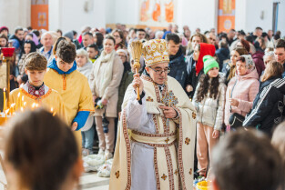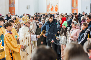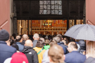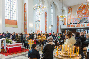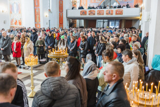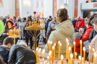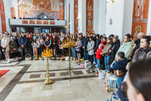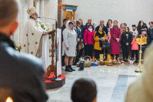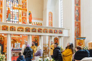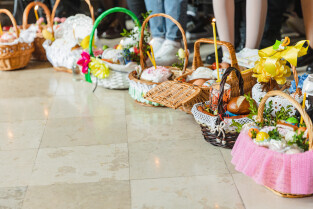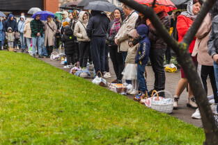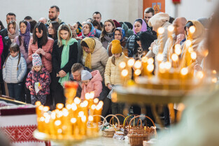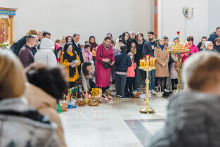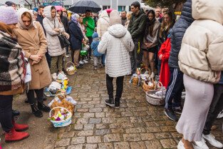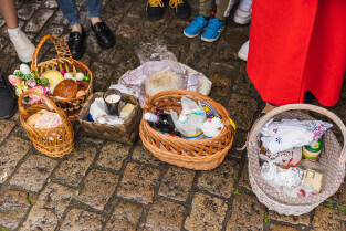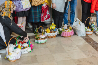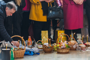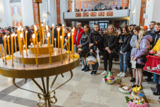 Gdańsk.Greckokatolicka rezurekcja w kościele św. Bartłomieja. Wielkanoc prawosławnych i grekokatolików. Nz. święcenie pokarmów