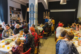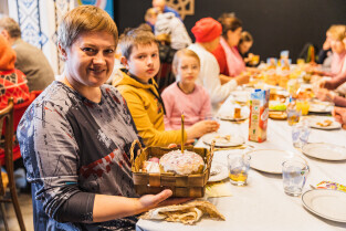 Gdańsk, ul. Aksamitna. Wielkanoc prawosławnych i grekokatolików. Tradycyjne śniadanie w Domiwce