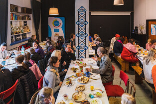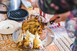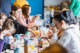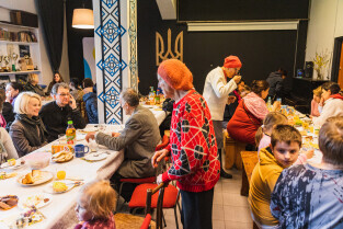Gdańsk, ul. Aksamitna. Wielkanoc prawosławnych i grekokatolików. Tradycyjne śniadanie w Domiwce