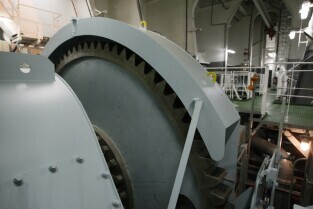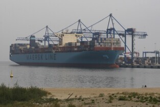 Do nabrzeża terminala DCT w Porcie Północnym wpłynął największy kontenerowiec w historii gdańskich przeładunków. 366 metrowy gigant Maersk Elba może przewieźć na swoim pokładzie 13092 kontenerów (TEU). Gdyby w każdym kontenerze znajdowały się tylko banany, to na każdego Polaka przypadałoby 16 szt. tego owocu. Dzięki swojej masie po rozpędzeniu Elby do maksymalnych 25 węzłów, a następnie wyłączeniu silników statek przepłynąłby jeszcze ok. 15 km. Nz. maszynownia, gdzie znajduje się silnik statku