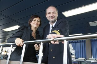 Do nabrzeża terminala DCT w Porcie Północnym wpłynął największy kontenerowiec w historii gdańskich przeładunków. 366 metrowy gigant Maersk Elba może przewieźć na swoim pokładzie 13092 kontenerów (TEU). Gdyby w każdym kontenerze znajdowały się tylko banany, to na każdego Polaka przypadałoby 16 szt. tego owocu. Dzięki swojej masie po rozpędzeniu Elby do maksymalnych 25 węzłów, a następnie wyłączeniu silników statek przepłynąłby jeszcze ok. 15 km. Nz. Kapitat statku Wojciech Kucz z żoną Gabrielą