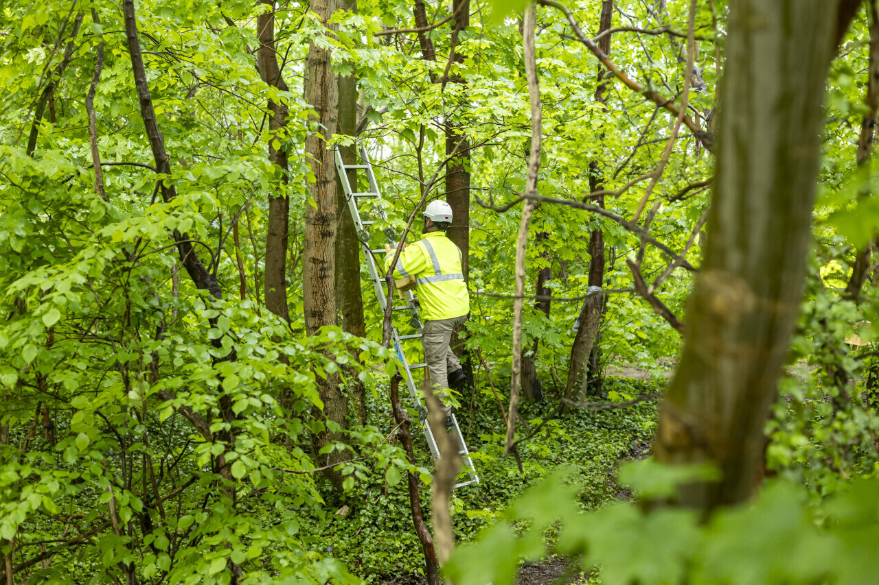 Gdańsk. W ramach Budżetu Obywatelskiego Pracownicy firmy MKW Pracownia, Bartosz Skrzypczak i Jakub Piechowiak zamontowali ponad 50 budek lęgowych dla ptaków w pasie zieleni pomiędzy ulicami F.Liszta, Starodworską i Kartuską.