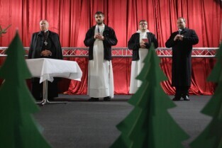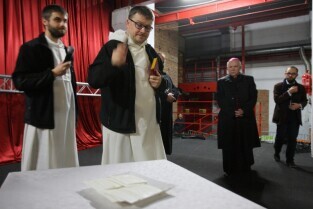Dominikanie i studenci z Duszpasterstwa Akademickiego Górka, działającego przy kościele św. Mikołaja w Gdańsku, zorganizowali spotkanie opłatkowe w Centrum Stocznia Gdańska. Nz Marcin Mogielski-Przeor Klasztoru Dominikanów i Kś. Krzysztof Niedałtowski-Duszpasterz Środowisk Twórczych Archidiecezji Gdańskiej.
