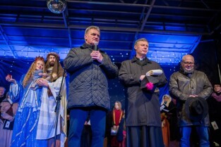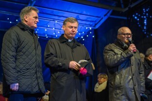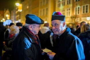 Tradycyjna coroczna Wigilia gdańszczan odbyła się na Długim Targu. Nz Bogdan Oleszek - Przewodniczący Rady Miasta, Proboszcz Bazyliki Mariackiej Ks. Ireneusz Bradtke, Wiesław Bielawski Z-ca Prezydenta Gdańska.