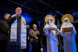 Tradycyjna coroczna Wigilia gdańszczan odbyła się na Długim Targu. Nz Proboszcz Bazyliki Mariackiej Ks. Ireneusz Bradtke.